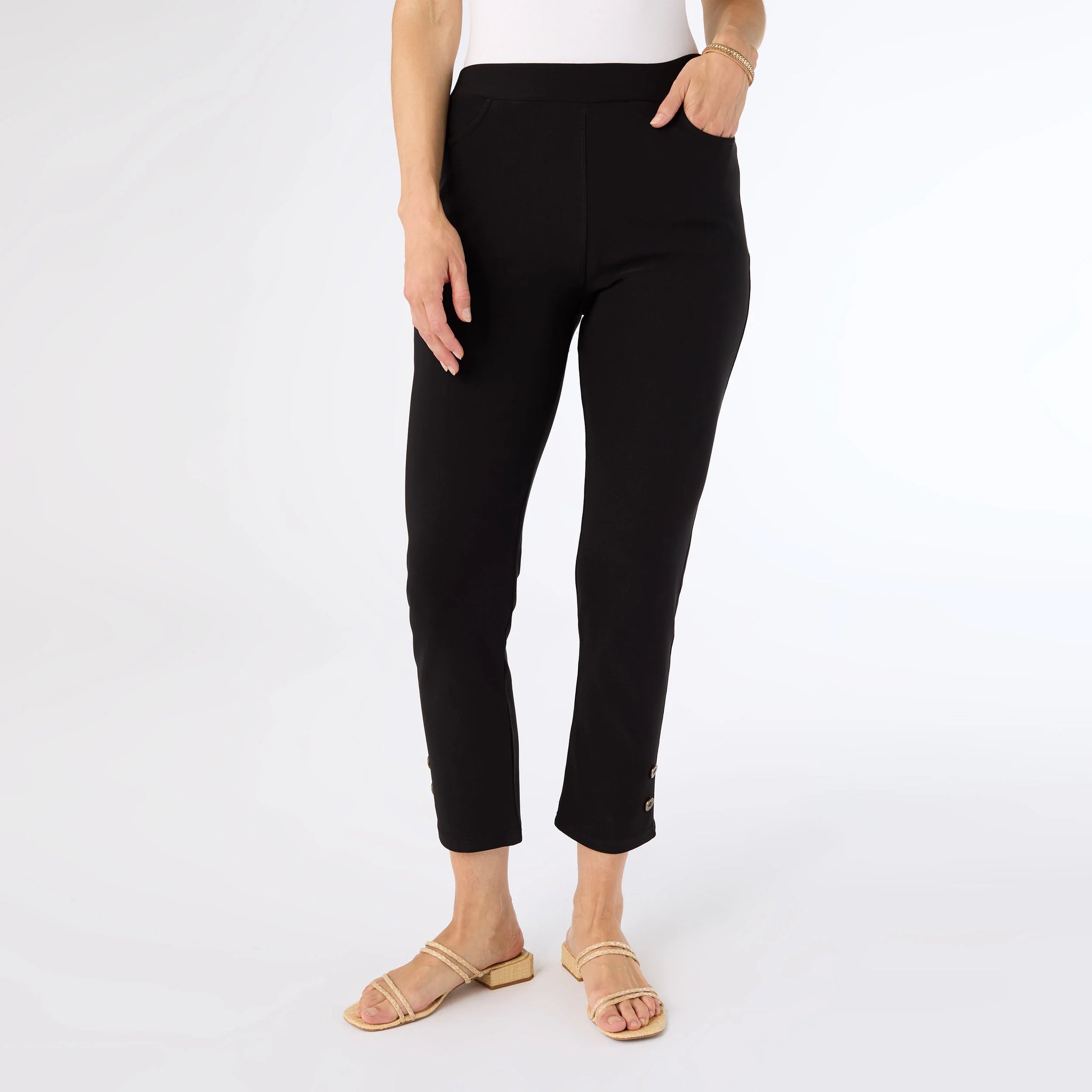 Step up your fashion game with our Georgie Bottom! These pull-on pants are effortlessly stylish, with cute button detail on the bottom adding a touch of fun. Perfect for any occasion, from work to play.