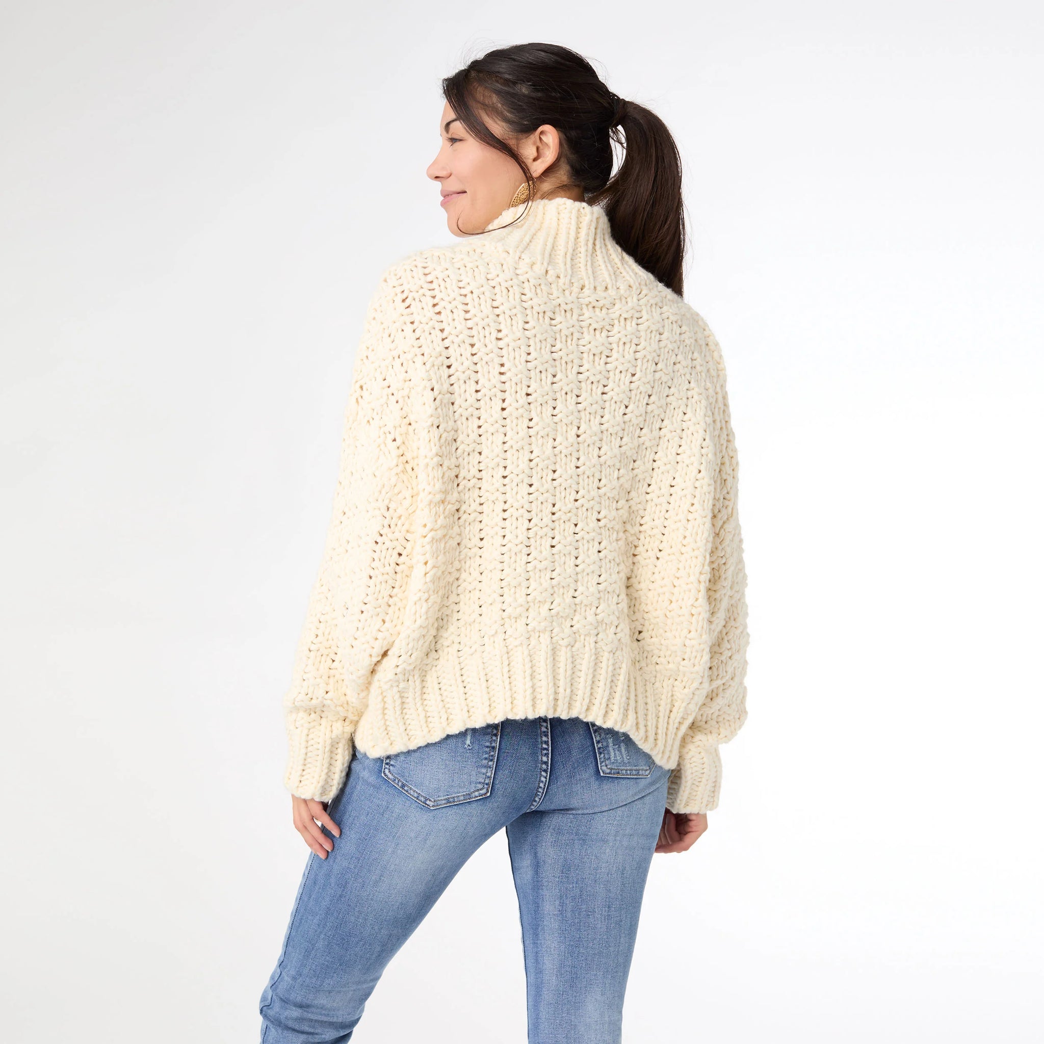 Update your fall look with our Kelok Chunky Loose Knit Sweater! Crafted with a cozy turtleneck and long sleeves, this sweater is ideal for staying stylish and comfortable during the cooler months. Pair it with your favorite jeans for a trendy and effortless outfit. Materials: Acrylic.